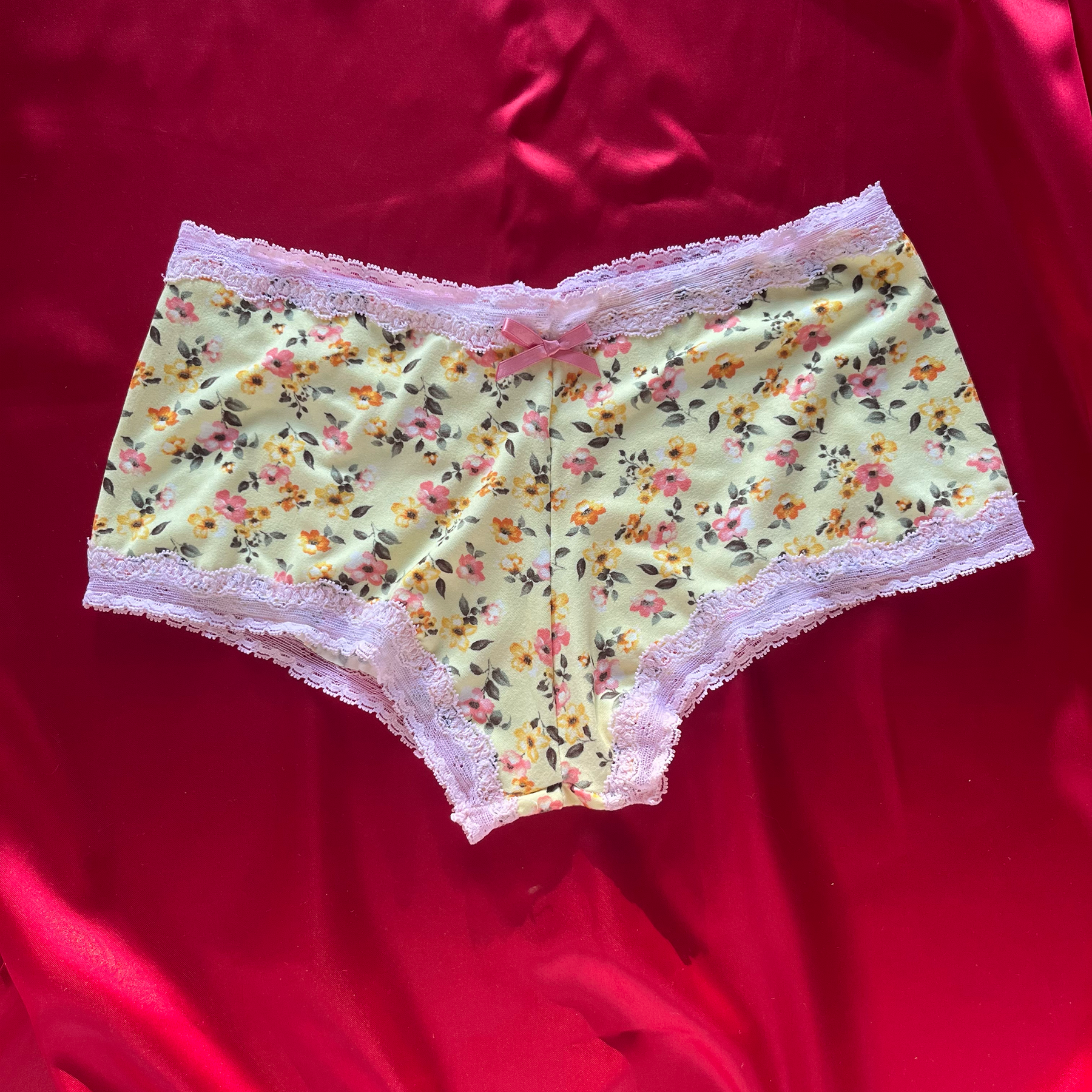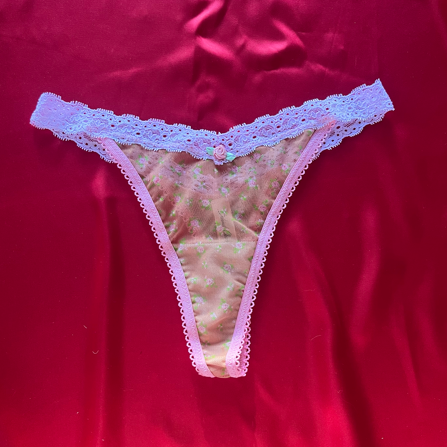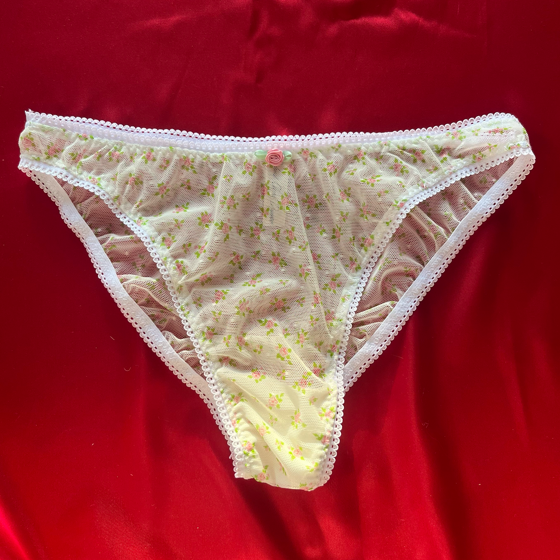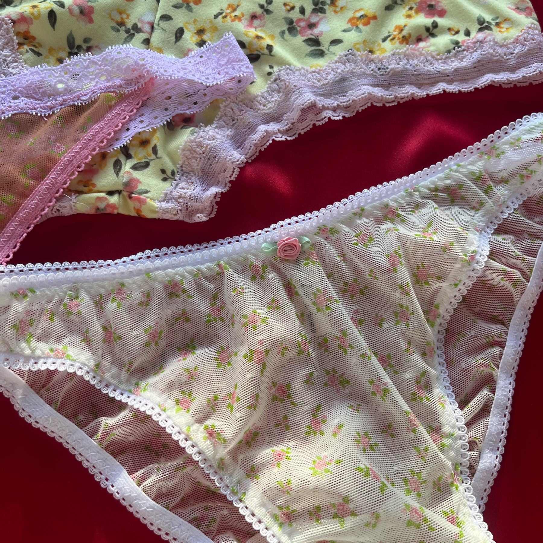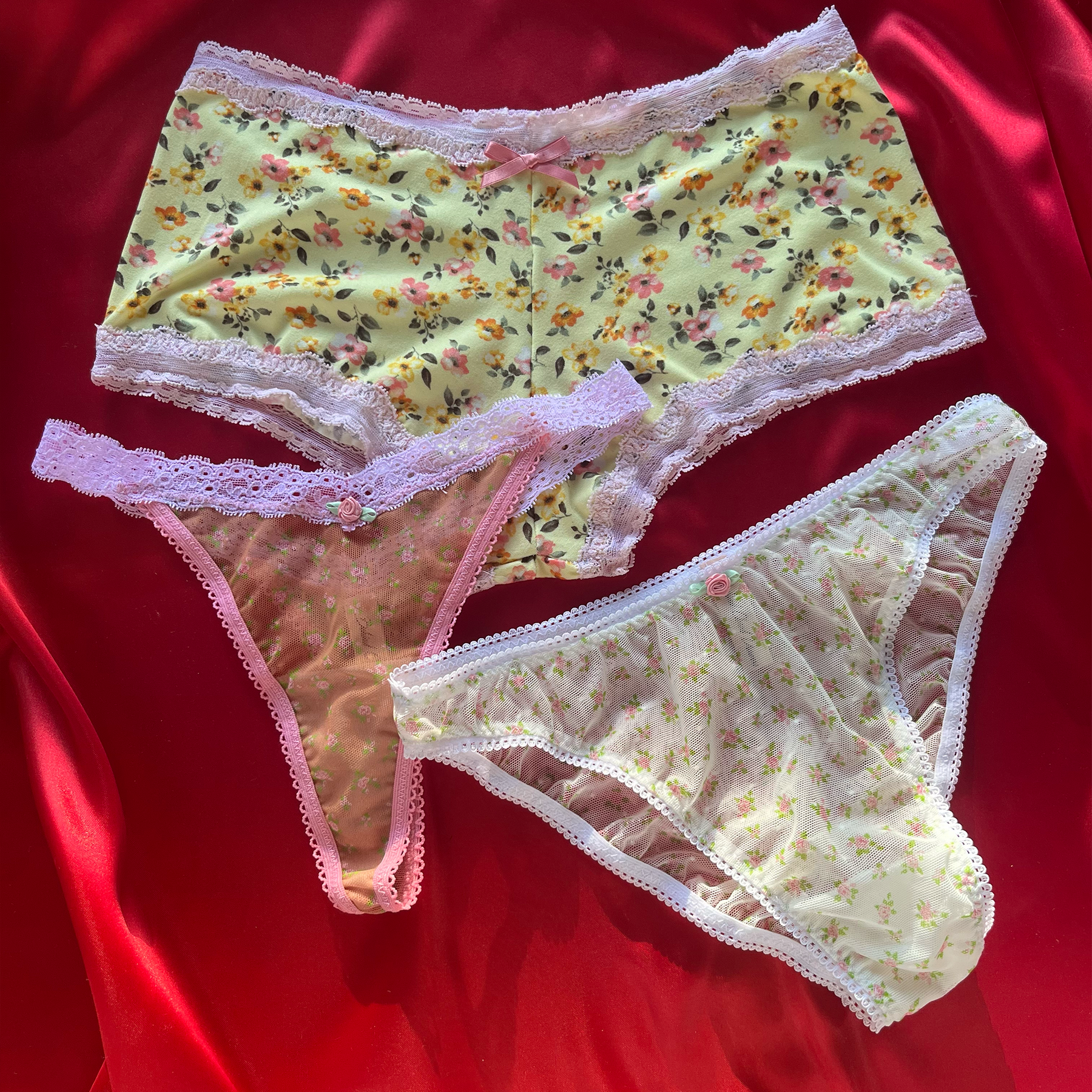 This set includes (mesh floral bikini, mesh lowrise floral thong, and the buttercup floral lowrise boyshort).
